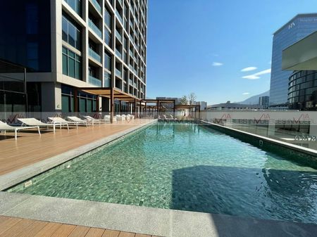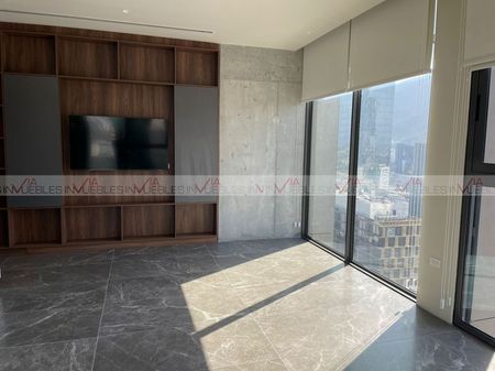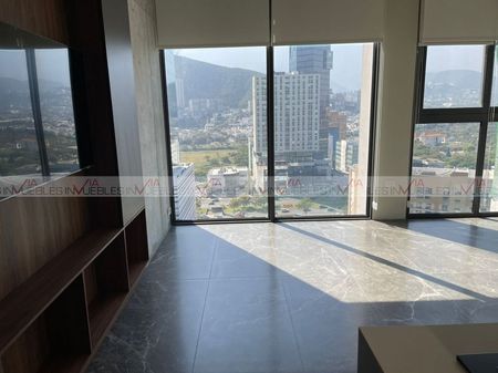 Hermoso Departamento equipado en renta con opción amueblado $55,000, zona San Pedro Valle Oriente. Cuenta con sala, comedor, cocina integral equipada con parrilla, horno, doble persiana en todas las ventanas, aire seccionado, boiler, tv, lava-secadora, canceles de vidrio templado en regaderas. Amplio espacio, luz natural y vistas panorámicas de la ciudad.