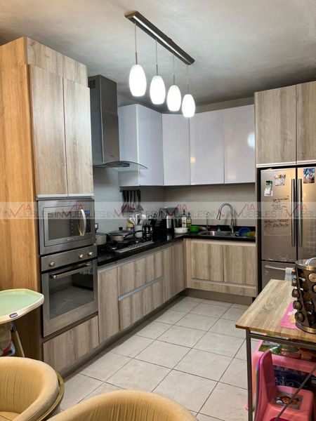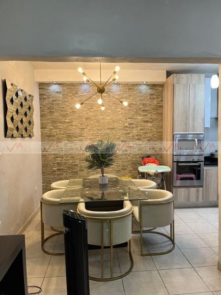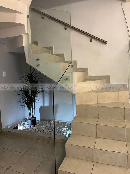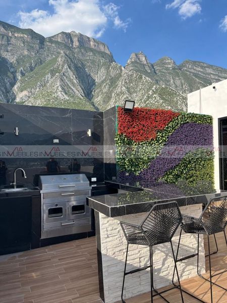 Hermosa casa de 3 plantas en fraccionamiento privado, con diseño y acabados de lujo. Primera planta: Sala, comedor, cocina integral con barra de cuarzo negro estelar, lavandería techada, 1/2 baño, cochera para 2 autos. Segunda Planta: Recamara principal con baño completo y closet muy amplio, 2 recamaras secundarias que comparten baño completo y balcón grande. Tercer planta: Sala de televisión, roof garden con area para asador y terraza al frente con hermosas vistas a la ciudad, a la huasteca y al cerro de las Mitras. Equipada con 5 minisplit, tinaco, cámaras de seguridad. El fraccionamiento cuenta con parques, canchas y casa club. Id Gvia: 113450