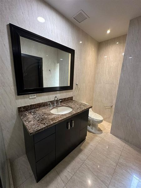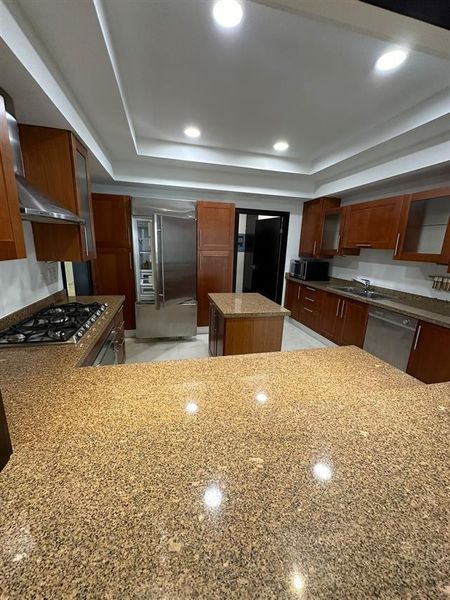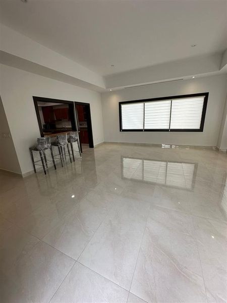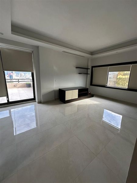 2 recámaras, 2 baños completos, 2 medios baños, sala, comedor, cocina, sala de televisión y terraza.