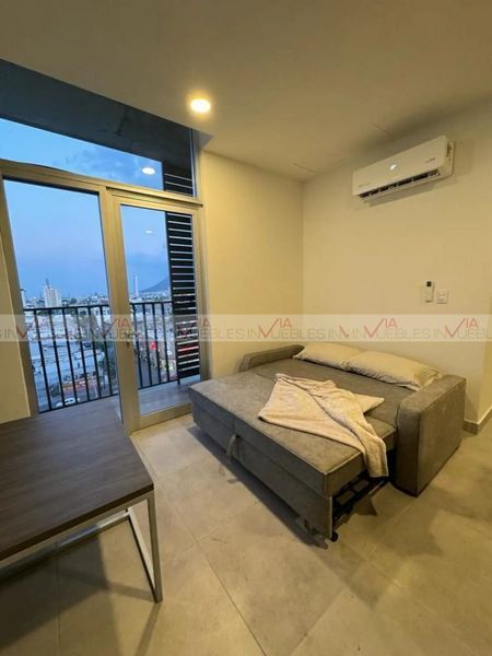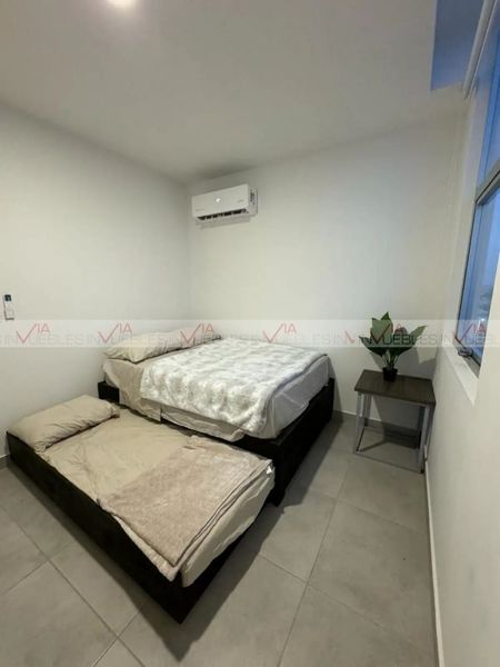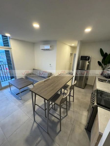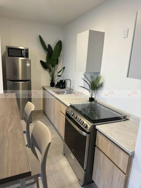 Hermoso departamento amueblado sala con sofa cama, mesa de centro, mueble de tv y minisplit cocina con estufa y horno, refrigerador, microondas, cafetera licuadora y barra desayunadora, Rec Principal con cama queen con walking closet, baño completo, minisplit y tv recamara Secundaria con cama matrimonial (arriba) canguro (individual) mini split y tv, baño completo afuera de rec compartido con área social centro de lavado y boiler eléctrico de paso. Áreas comunes como gym, patio para perros, zona de asadores, espacios de trabajo etc. 1 cajón de estacionamiento seguridad 24 horas incluye mantenimiento. Id Gvia: 115061