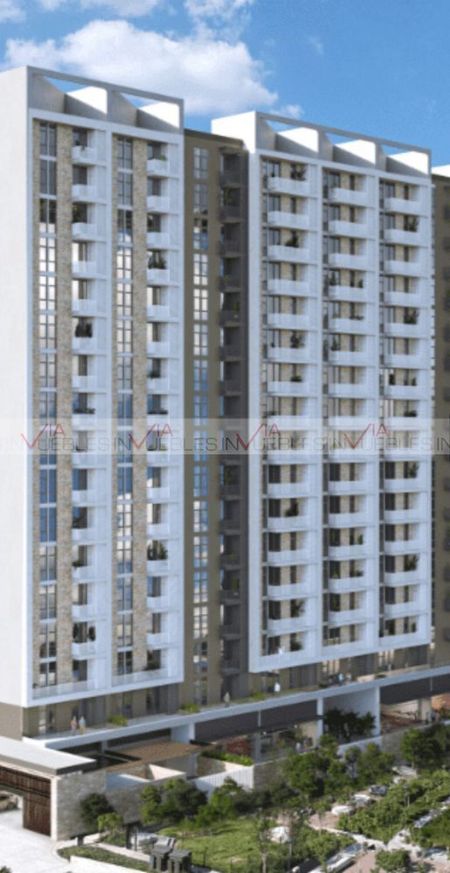 Un distrito que integra departamentos, comercio y áreas de esparcimiento; un conjunto de soluciones desarrolladas para un bienestar integral, 19 niveles, 255 departamentos, 3,115 m2 áreas sociales, 581 cajones de estacionamiento, 2,411m2 plaza comercial.