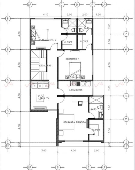 Segunda planta; 3 recamaras cada una con baño-vestidor estancia y lavandería,
