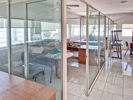 Oficina de 2 Niveles con Recepción, Cochera para 4, 2 Techados, 1 Privado, 7 Cubículos de Trabajo, Sala de