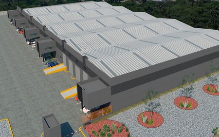 Se conforma de cinco naves de 1,628 m² cada una, con un total de 5 andenes de carga (18 x 4 m cada uno) y cortinas con altura de 4.15 metros. Incluye 60 cajones de estacionamiento (3 x 5 m), 20 cajones en área común, y 12 cajones para camiones en área común (21 x 4.15 m). Dispone de iluminación LED de 36,000 lúmenes por nave, tragaluces (5%), subestación eléctrica de 300 kVA (150 kVA para las cinco naves) y preparación para minisplits en oficinas.