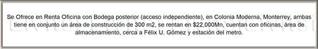 Se Vende bodega con oficinas, en Colonia Moderna, Monterrey, área de 316 m2, se vende en $4,500,000Mn, bodega con oficinas con acceso independiente, próxima a Félix U. Gómez y estación del metro. ML Id 14131