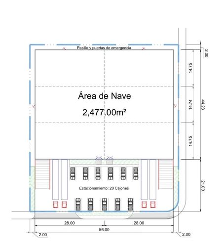 Renta de bodega en parque industrial, 4,028 m2 de terreno y 2,477 m2 de construcción. Cuenta con red de agua potable, red de drenaje industrial, gas natural, red eléctrica, luminarias tipo LED, fibra óptica, 2 casetas de vigilancia y estacionamiento para 20 carros. Lista para estrenarse.