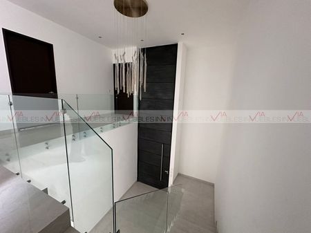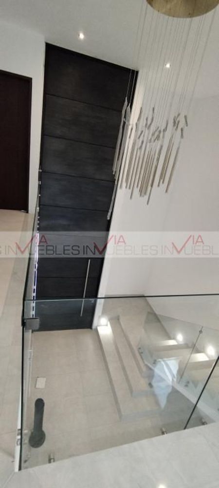 En planta alta hay estancia y 3 recámaras, cada una con amplio baño (la recámara principal con doble lavabo y tina), vestidor y terraza, la casa se queda equipada con: cocina integral con parrilla, campana, torre caliente (hornos), minisplit, boiler y tinaco.