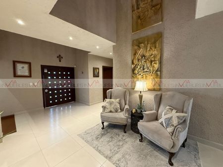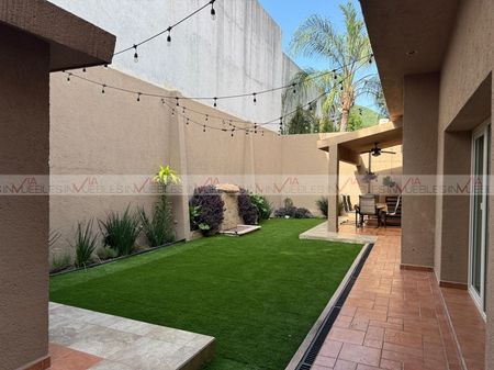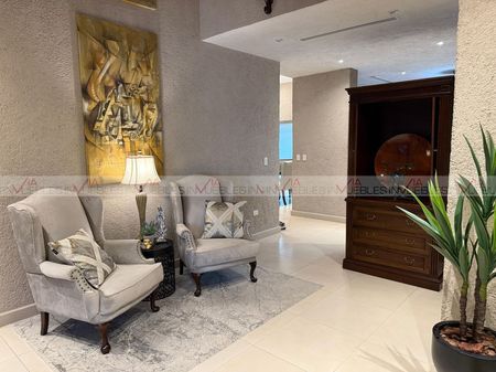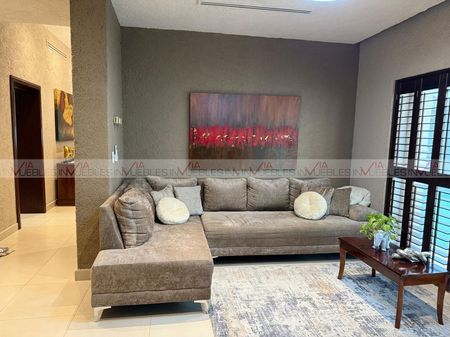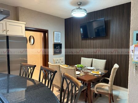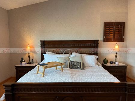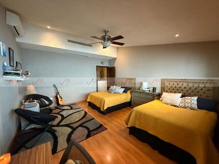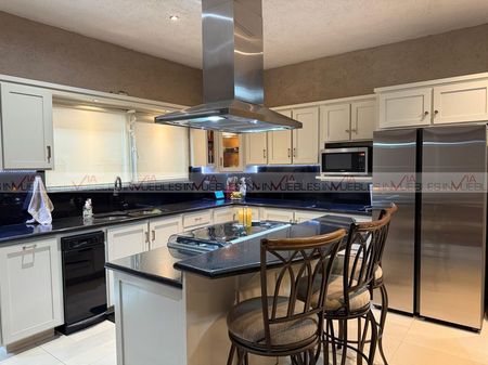 Hermosa residencial de 4 recamaras una de ellas en planta baja, cuenta con seguridad 24 horas, áreas de juegos en amenidades, 3 recamaras con walking closet, 5 baños, portón electrico, estacionamiento para 3 carros, 450 metros de terreno y 570 de construcción, sala, comedor, cocina equipada completamente amueblada, oficina, gym, lavandería, cuarto de servicio, alacena, muebles de madera empotrados, recibidor, pequeña terraza, area de asador y jardín lista para habitarse Id Gvia: 118437