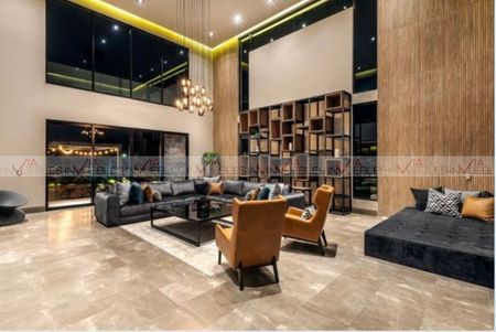 Planta Baja: 1 recamara en pb con baño completo, cuenta con recibidor, bodega, espacio de terraza, cocina, sala-comedor, acabados premium en mármol Santo Tomas y granito. Cuarto de servicio con baño completo. Cochera para 3 autos. Preparación solar y carro eléctrico.