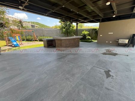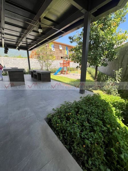 2 niveles, cochera para 2 autos, recibidor con doble altura, 3 recámaras cada una con baño y vestidor, estancia, lavandería, sala, comedor, cocina, cuarto de servicio con baño completo, terraza techada con asador y amplio jardín.