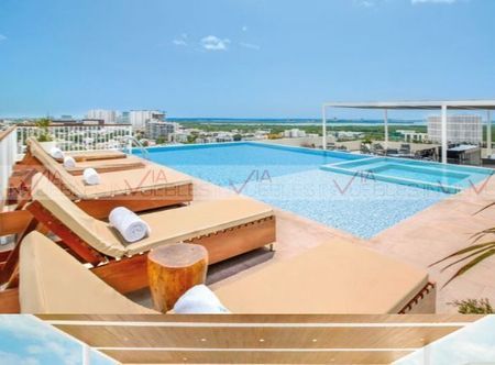 Hermoso departamento en venta dentro del exclusivo desarrollo residencial en una de las zonas mas privilegiadas de Cancún, cuenta con 3 recámaras, 3 baños, sala, comedor, cocina y terraza, cuenta con 2 espacios de estacionamiento, alberca para adultos, alberca familiar, gimnasio, Pet Park, juegos infantiles, canchas de Padel.