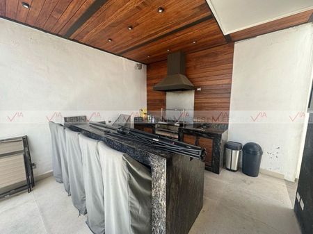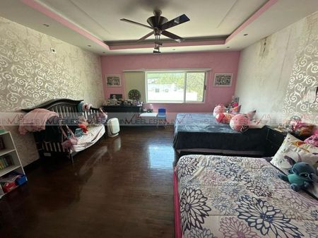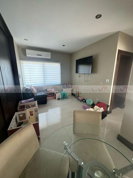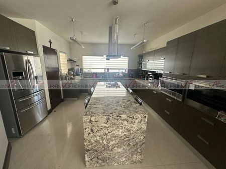 Planta baja, sala con doble altura,1 medio baño (visitas),1 baño completo (que se adecuó en un área de tv),cocina equipada, área comedor y terraza (patio), equipada con asador, techo, barra de granito cuarto de servicio exterior con su baño completo planta alta 3 recámaras con su walking closet c/u 3 baños completos sótano, que se puede adecuar como una super recámara, con su baño completo, cantina de madera barra de granito cochera independiente para un carro extra con salida a la parte trasera de la casa.
