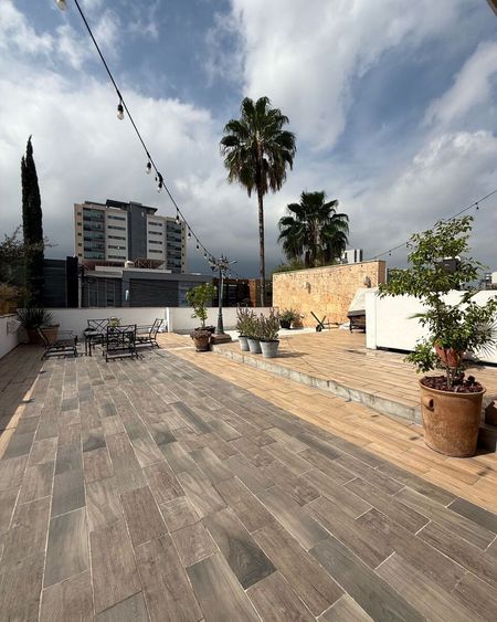 Segundo nivel: Area de terraza con vistas espectaculares a la Sierra Madre (techada y parte sin techar) con bar, estancia familiar con baño completo y bodega muy amplia.