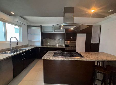 Casa en renta en colonia privada con ubicación ideal a solo 5 minutos de San Pedro, con vigilancia 24 hrs, parques, 3 recámaras cada una con baño y vestidor. Amplia estancia en el 3er nivel con baño completo, cuarto de servicio, cocina, jardín y paneles solares.