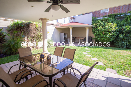 Casa en renta en súper ubicación, cuenta con un amplio jardín con terraza techada con asador, cocina con antecomedor, área social de muy buen tamaño, oficina, estancia de tele en planta alta y 3 recámaras cada una con su baño y vestidor. Cochera para 4 carros, gimnasio o cuarta recámara con acceso desde el jardín. Cisterna y sisteme hidroneumático.
