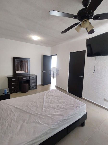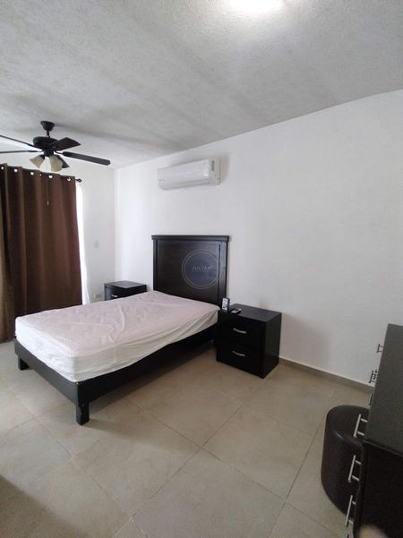 Segunda planta, 2 recamaras con closet y mini Split, con camas, ambas comparten baño completo, la recamara principal cuenta con cama, mini Split, closet y baño completo. Cuenta con alberca, tinaco, cisterna y bomba.