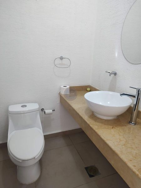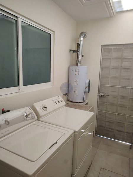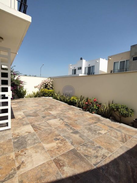 Casa en renta amueblada, cochera doble, recibidor, 1/2 baño, sala comedor, minisplit, cocina integral con estufa refrigerador microondas, lavandería techada con salida independiente, lavadora, secadora, boiler, pasillo lateral, patio.