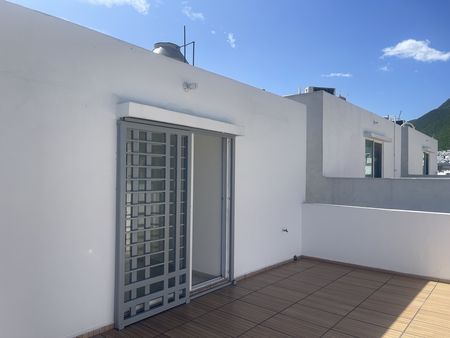 Casa en Renta Col. La Perla, de 3 niveles. 140 m² de Terreno, 211 m² de construcción. 3 recamaras, la principal con baño-vestidor. Las recamaras secundarias comparten baño, ambas con closet de pared, amplia sala-comedor y patio de muy buen tamaño. Cochera para 2 autos, cuarto de servicio con baño completo, cocina con granito equipada con estufa y campana. Cuarto de servicio con baño completo en 3er nivel, así como 2 terrazas panorámicas. Privada con Vigilancia 24/7 y Acceso controlado. Cerca de Avenidas, Principales como Av. Eugenio Garza Sada y Av. Lázaro Cárdenas. Cerca de escuelas, hospitales y centros comerciales. AA Id 13986 / 23331