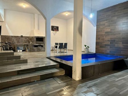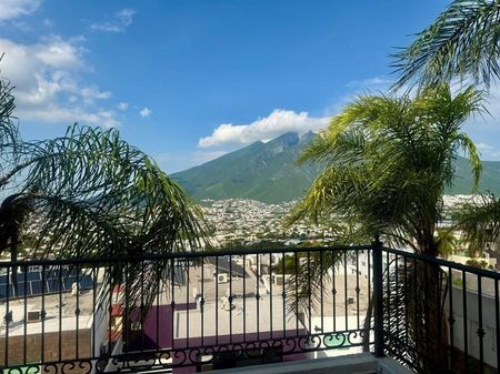 Casa con excelente ubicación, hermosas vistas al cerro de la silla, alrededor de la naturaleza, cuenta con 3 recámaras, la principal con baño/vestidor, las 2 secundarias con clóset de pared y comparten baño, amplio patio con alberca, ideal para las reuniones familiares, cuenta con minisplits, ventiladores, cocina equipada, tinaco, una oficina con regadera, estancia familiar, cuenta con pasillo lateral para entrar por la cochera el área social de la alberca.