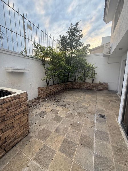 En planta baja cuenta con recibidor, sala-comedor, cocina con antecomedor y un patio acogedor con asador que conecta a lavandería y cuarto de servicio. Toda la casa tiene minisplits nuevos.