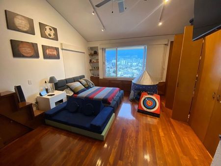 Cuenta recibidor, con sala, comedor, oficina con mueble para biblioteca, baño de visitas completo, cocina integral equipada con barra desayunado con antecomedor , cuarto de servicio con baño completo, lavandería techada, estancia, recamara principal con baño vestidor, con espacio para poner una salita, vistas espectaculares desde terraza propia, 1 de las recamaras secundarias tiene un tapanco que se usa como area de estudio, con baño completo y closet, 2 recamaras mas con su baño completo, todas las áreas climatizadas, con abanicos y persianas, patio con jardín muy amplio con bodega, arrea del jardín en otro nivel, alberca con cuarto y baño, cancha de fútbol y área para poner mas jardín.