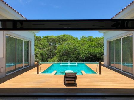 *Sistema de Home Theater-Audio ambiental complementando con Servicio de Cine Pantalla enrollable en el exterior de la alberca.