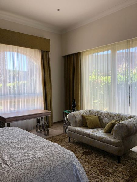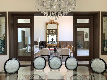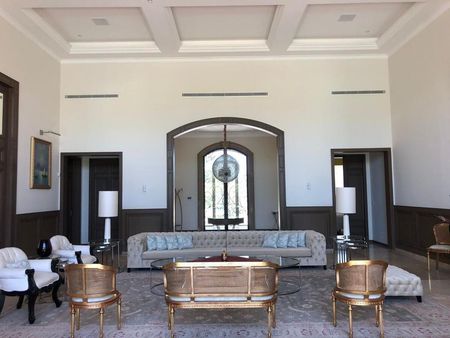 El mobiliario es de algunas fábricas como Rocha bobois y talleres de ebanistería de Guadalajara con acabados en hoja de oro. Cristales de mesas con pecho de paloma y bases de acero inoxidable pulido así como obras de arte de de locales de antigüedades de prestigio en varias partes de la casa.