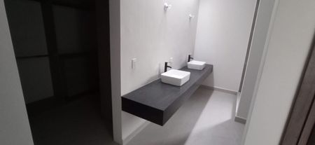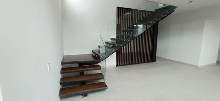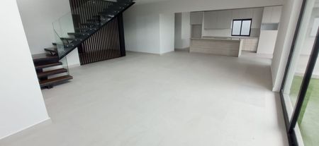 La propiedad ofrece un generoso espacio interior y exterior, destacando la cochera para múltiples autos y baños privados para cada recámara, garantizando privacidad y comodidad. La sala comedor de doble altura no solo sugiere un diseño arquitectónico moderno, sino que también crea una sensación de amplitud y estilo.
