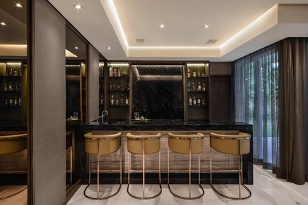 Sótano: Área de juego, cuenta con un bar empotrado. Mesa de juego y cuarto de Tv con su mueble también con su mueble empotrado. Medio baño y oficina también se encuentran en esta planta.