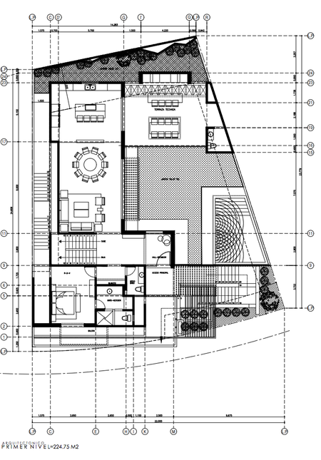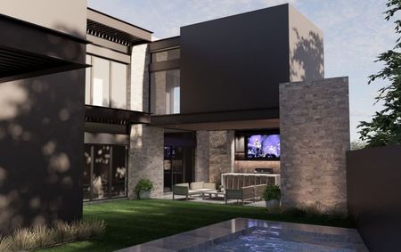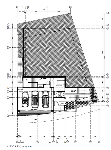 PLANTA BAJA: Acceso principal, Cochera techada para 3 autos, cuarto de servicio completo