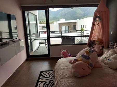 Casa de dos niveles, lista para habitarse, excelente estado. PRIMER NIVEL: Recibidor, Sala, comedor, medio baño de visitas, cocina integral equipada, cuarto de servicio con baño completo, lavandería, amplio jardín, cochera para 2 autos con portón eléctrico. SEGUNDO NIVEL: Estancia, Tres recamaras, la principal con baño, walk in closet, balcón y estudio, las otras dos recamaras con baño completo y walking closet cada una, terraza que comparten las dos recamaras secundarias, con hermosas vistas. Totalmente equipada con minisplit y persianas. Privada con áreas verdes y juegos infantiles. BM Id 11094