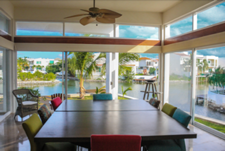 La residencia se encuentra en un lugar privilegiado al estar en una esquina y cuenta con muelle para embarcación de hasta 25 pies, área de terraza con techada y estacionamiento techado para 2 vehículos y 2 espacios al aire libre