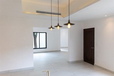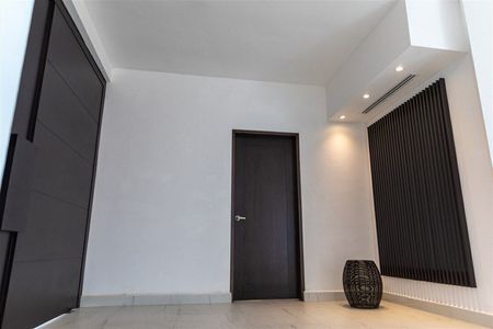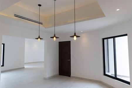 Primer nivel: cochera doble techada, jardín frontal con área de asador y bodega. En interior tenemos recibidor, medio baño, sala comedor amplia con vista a jardín interior, área de cocina con espacio para antecomedor, lavandería y cuarto de servicio. En este nivel se tiene un cuarto de juegos y una amplia recámara con baño vestidor y terraza privada.