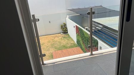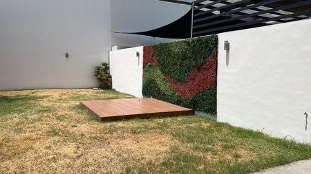 Primer Nivel: area de recibir de doble altura, baño de visitas, sala comedor, estancia familiar, cocina y amplio jardín o patio de 120 m2, con cochera techada para 2 autos .