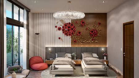 Cuenta con 3 recámaras,cada una con baño completo ywalk-in closet +1 opción de recámara en planta alta con costo extra.