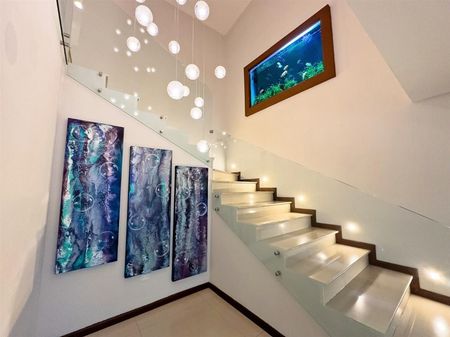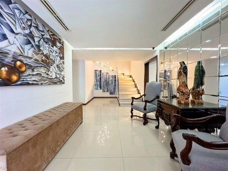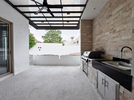Cuenta con amplias áreas sociales, cochera para 4 autos con instalación para carga eléctrica, 27 paneles solares, cocina equipada con estufa Wolf y refrigerador Subzero.