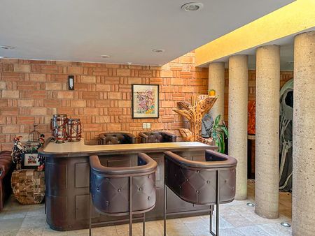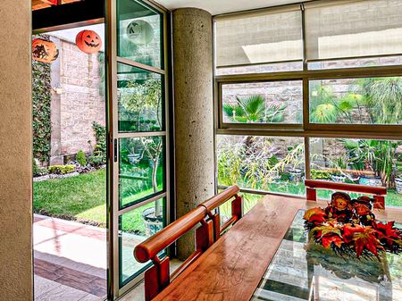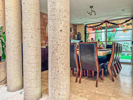 Residencia en venta de tres niveles, ubicada cerca de centros comerciales, colegios, salidas a vías rápidas. Estacionamiento techado para 4 autos con portón automatizado, pasillo lateral que conecta al jardín, cisterna de 5,000 L. Primer nivel: Espacios amplios en sala con fuente y bar, comedor que conecta a la terraza y al amplio jardín, cuarto de estudio u oficina, medio baño de visitas, cocina integral con antecomedor, cuarto de despensa y lavandería. Segundo Nivel: Cuatro recamaras y una sala de televisión con terraza, recamara principal con vestidor y baño con tina de hidromasaje, dos recamaras con closet y baño cada una, la cuarta recamara o estudio. Tercer Nivel: Cuarto de servicio con baño, azotea con tragaluces. Pisos de mármol y recamaras con pisos de madera de ingeniería. Iluminación natural, Tinaco de agua de 1,100 l. Cámaras de seguridad. ¡¡¡¡¡Lista para ser habitada!!!!!