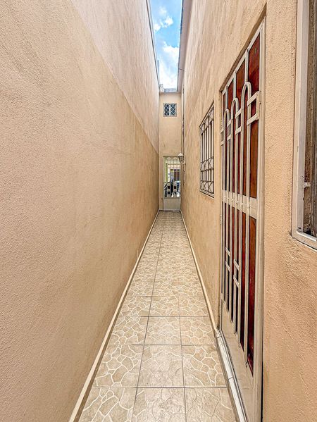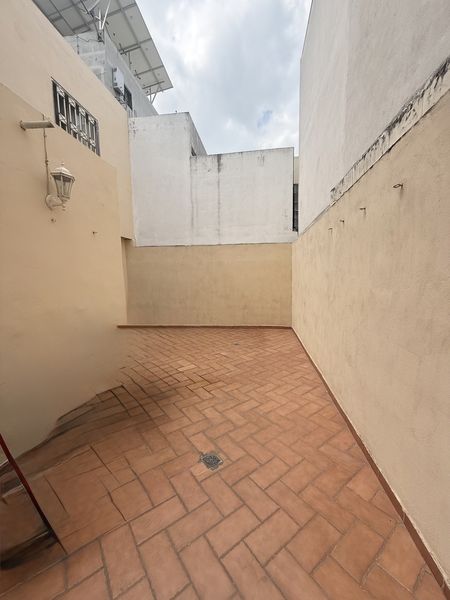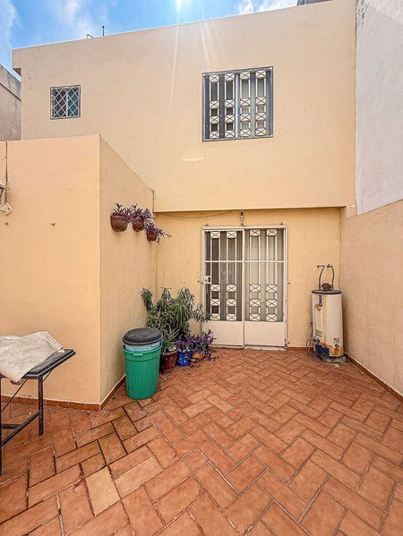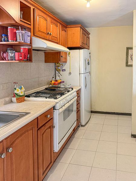 Planta baja:sala, comedor, cocina integral en madera maple equipada con estufa y refrigerador, baño de visitas, lavandería techada, patio muy amplio, corredor lateral.