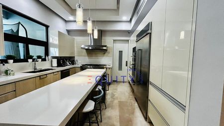 Distribuida en 3 niveles, cuenta con recibidor con vistas hacia el área de la alberca/asador, su área de sala-comedor-área de estar. Tiene una amplia cocina que cuenta con espacio de tv y comedor, sala de cine con espacio de bar y baño propio.