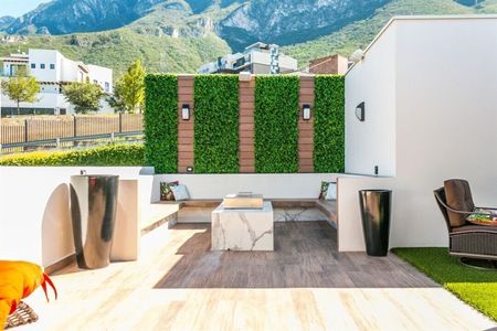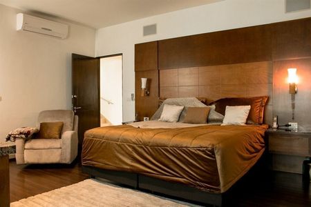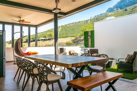 En 2a planta tiene 4 recámaras, la recámara principal cuenta con terraza con vista hacia el cerro de las mitras, baño y walk-in closet, 2 de las recámaras secundarias comparten baño, cada una con vestidor independiente y tienen balcón con vista a la sierra madre, la 3er recamara tiene baño completo y walk-in closet, cuarto de televisión y sala de cine con equipo de primera calidad. Area social con asador y barra totalmente nuevo y vistas panorámicas a la sierra madre.