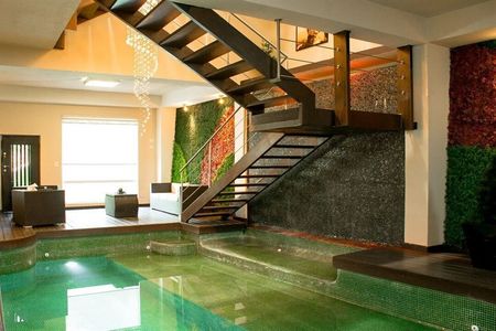 En la primera planta baja cuenta con cocina totalmente equipada con barra de desayunadora de granito y electrodomésticos de alta gama, sala-comedor y salida a área social con alberca techada, equipada con calefacción y deck.