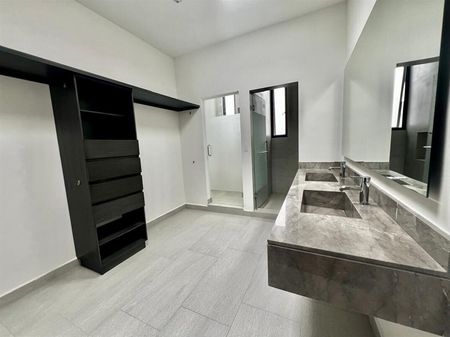 Vivienda nueva, con espacios cómodos y confortables en venta, ubicada en fraccionamiento privado. Cuenta con distribución óptima, equipada con cocina integral con estufa y campana, cajoneras en closets (1 walk in y 2 de pared), canceles y espejos en baños, barandal en escalera, pasto artificial en área de jardín, preparaciones para mini splits, firme en área de jardín para asador, terraza y usted puede adecuar su área social a su gusto. Cochera techada para 2 carros, espacio para hacer su bodega.
