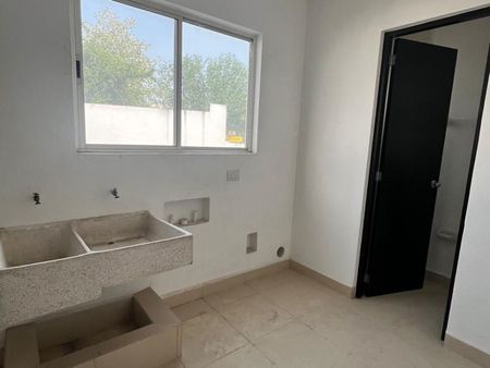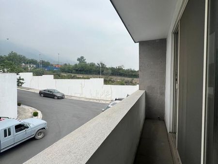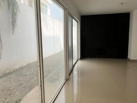 La propiedad en venta ubicada en el sector francés de Cumbres es una residencia de cuatro niveles. Situada en esquina, cuenta con una cochera cubierta doble. En la planta baja, se encuentran la sala, el comedor, la cocina con barra desayunadora, la lavandería, un estudio y un baño de visitas. El patio con jardín y una bodega completan esta área.