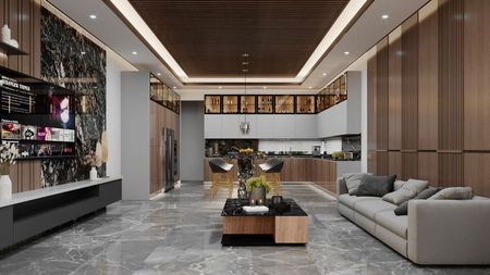 Con jardinera decorativa alrededor del barandal de la doble altura