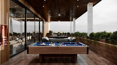 Cuatro de juegos techado abierto con 2 medios baños y preparación para asador con su barra de granito y tarja.