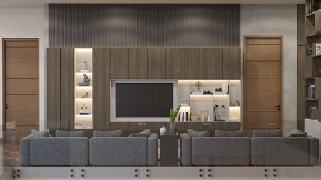 Cuenta con 4 recámaras en planta alta cada una con baño completo y walk-in closet + 1 recámara/cuarto de cine con baño completo y walk-in closet en planta baja.