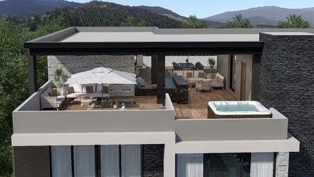 Jardín:291.29m2 +40.95m2 terraza techada 4plantas con aislamiento térmico en murosCocina integral con isla y cubierta de cuarzo, despensa y puertas semisólidas con marco de 17 cm.