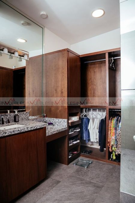 Recamara principal y secundaria con amplios walk in closet con cubiertas de granito.