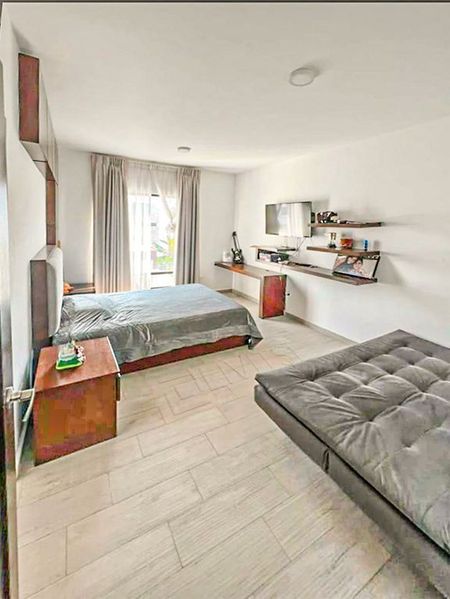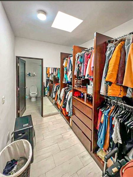 Casa en venta en Valle de Cristal de 2 pisos. Cochera techada para 3 autos. 1er piso: Recibidor, 1/2 baño de visitas, Cocina integral, Sala/comedor, Patio, Palapa, Cuarto de servicio doble con su baño completo. 2do piso: Estancia, 3 recamaras con su baño vestidor cada una. La casa se queda con 20 paneles solares y 6 minisplit, Cámaras de seguridad. El fraccionamiento tiene 2 parques, a 6 minutos de Esfera SG id 13134 /11234