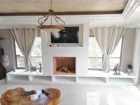 Área social: Sala con chimenea, comedor y balcón con vistas al Cerro de la Silla